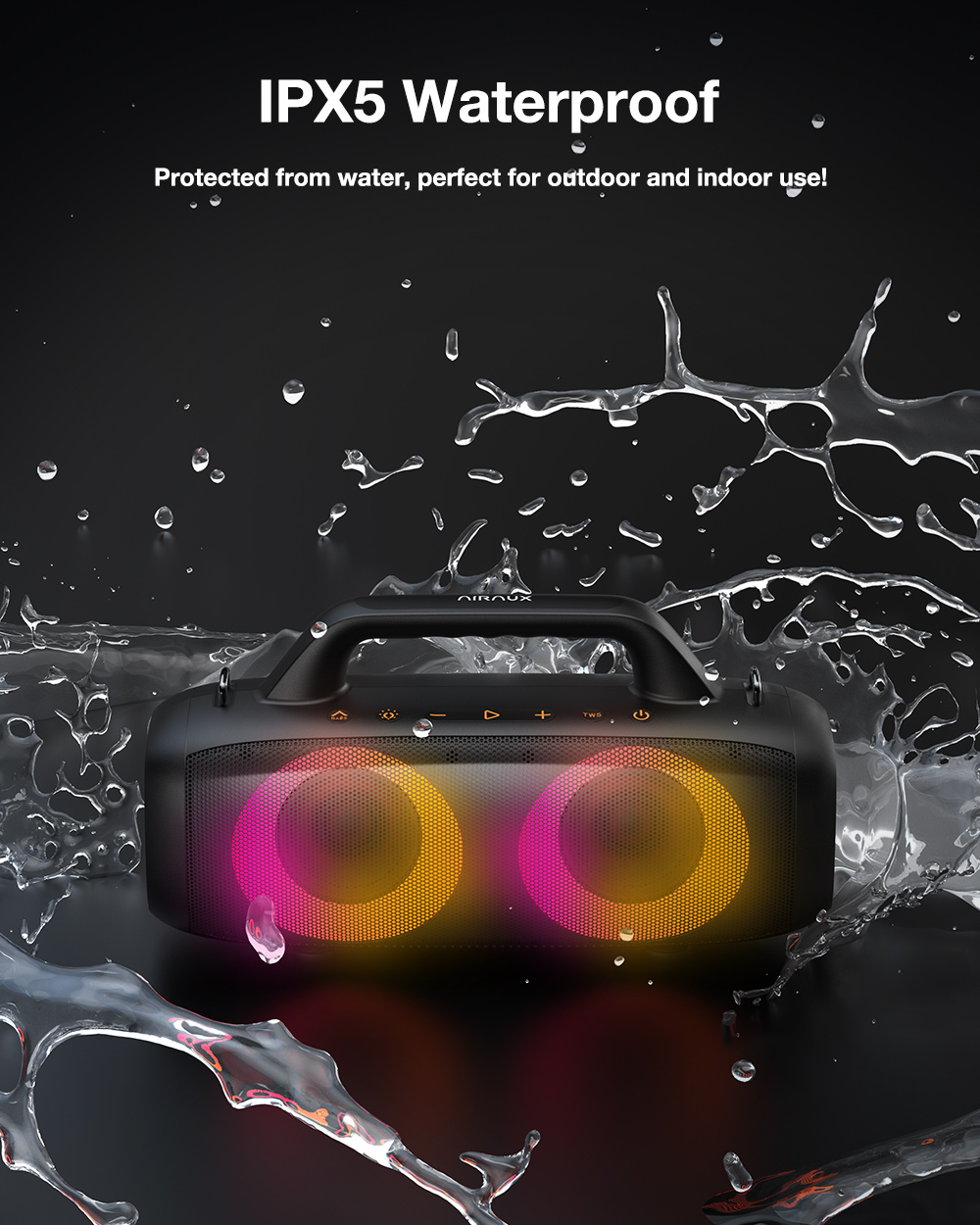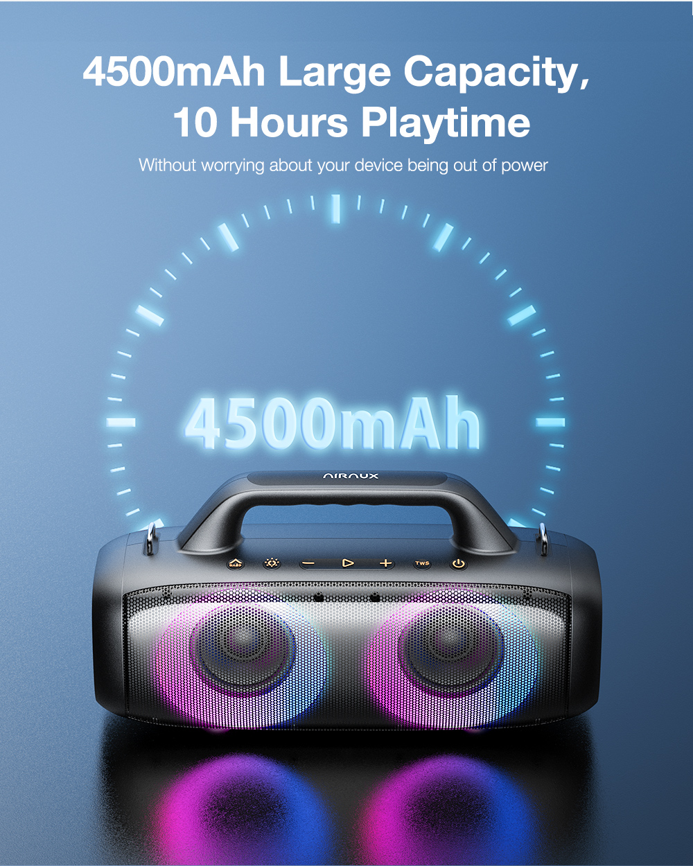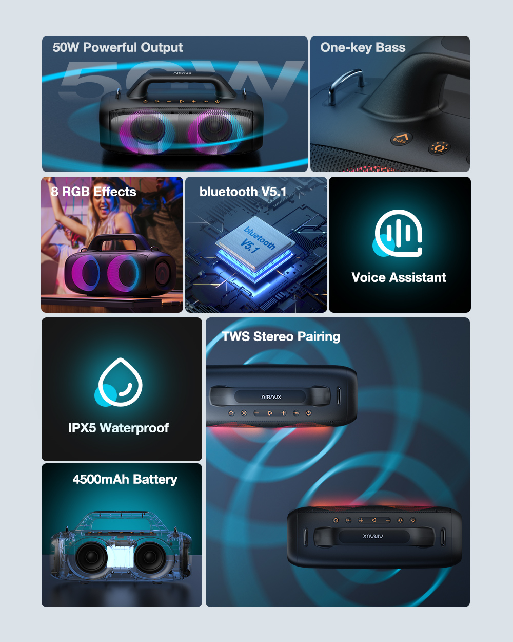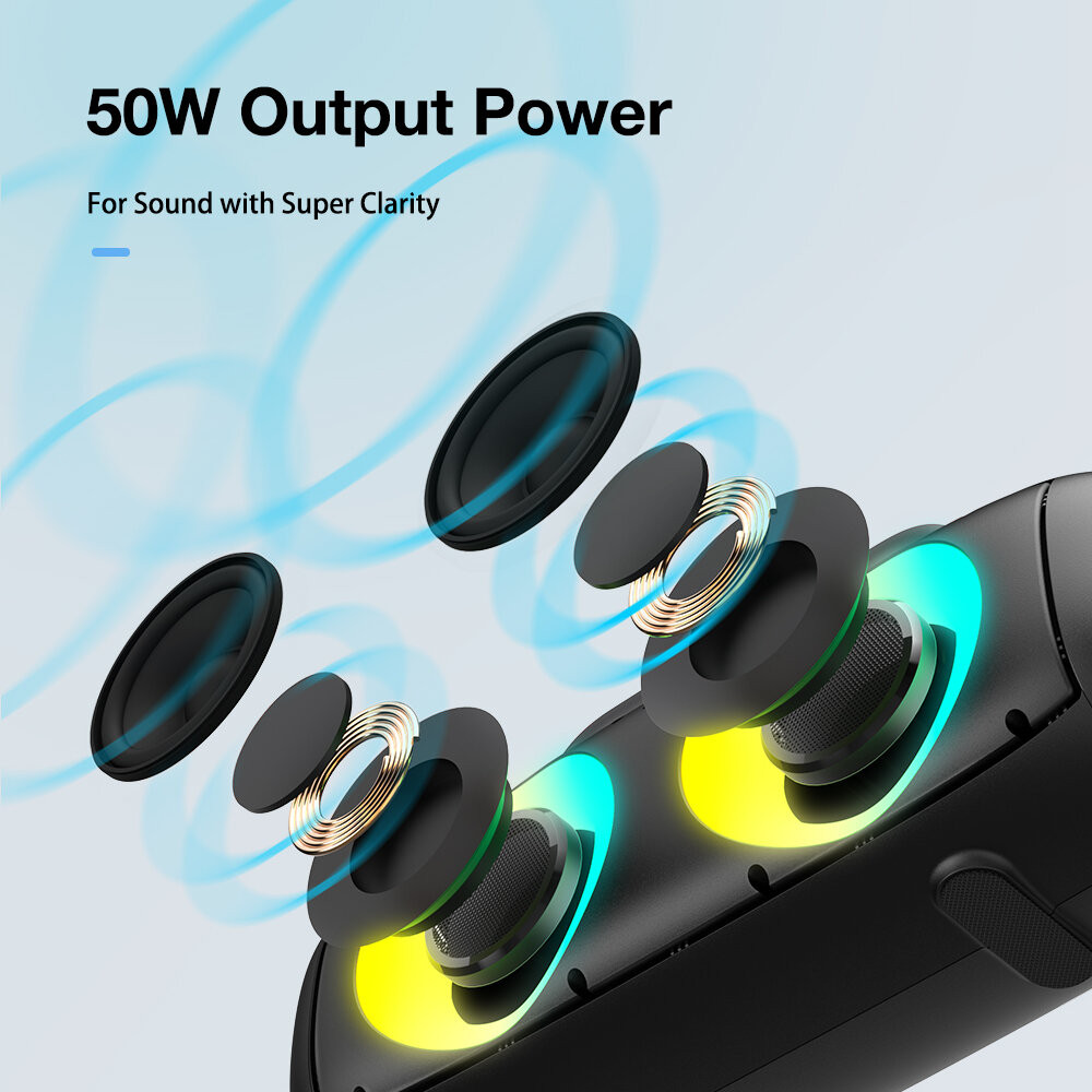 AirAux AA-DH1 50W TWS bluetooth V5.1 hangszóró 360° basszus 4500mAh akkumulátor RGB effektus IPX5 vízálló
