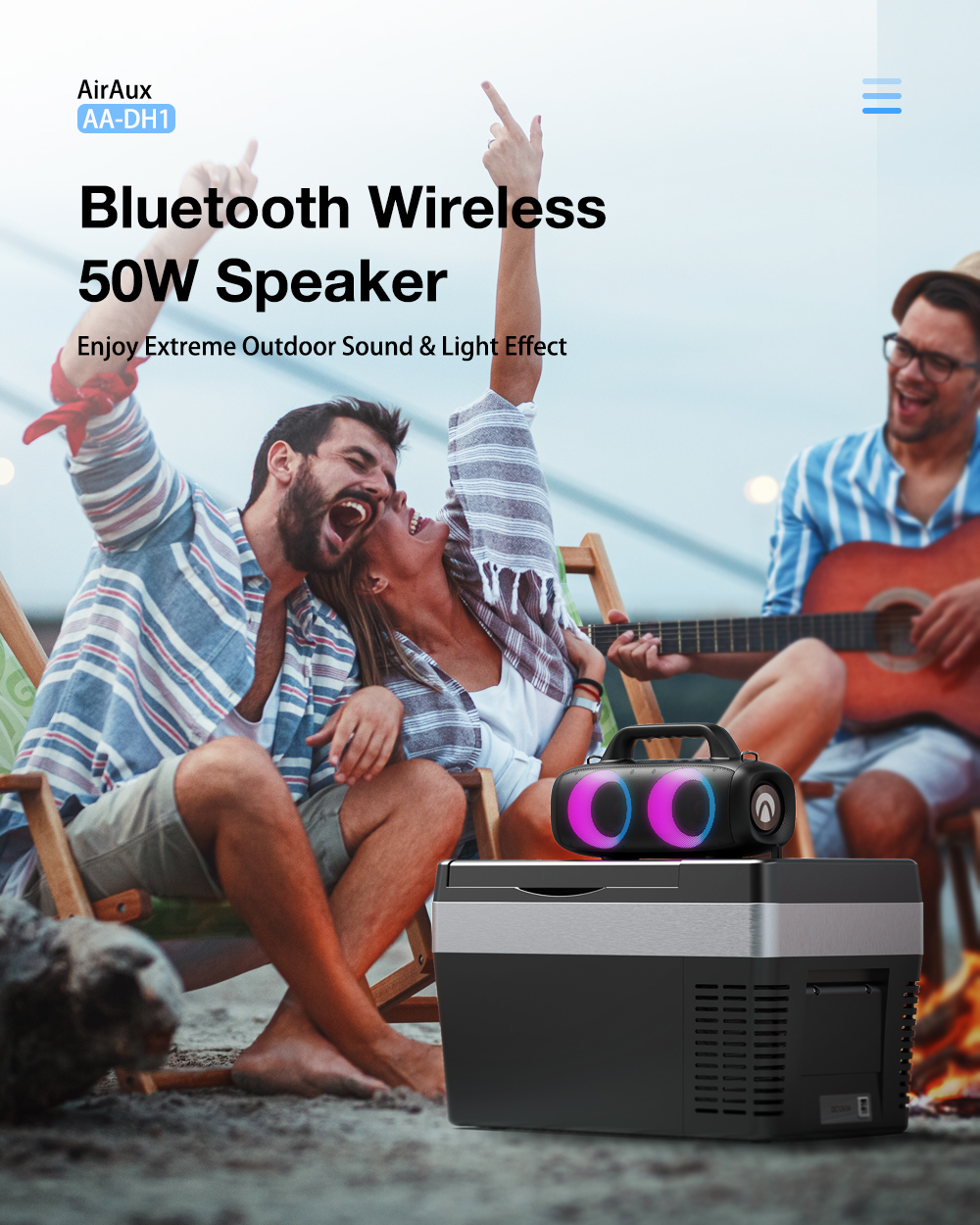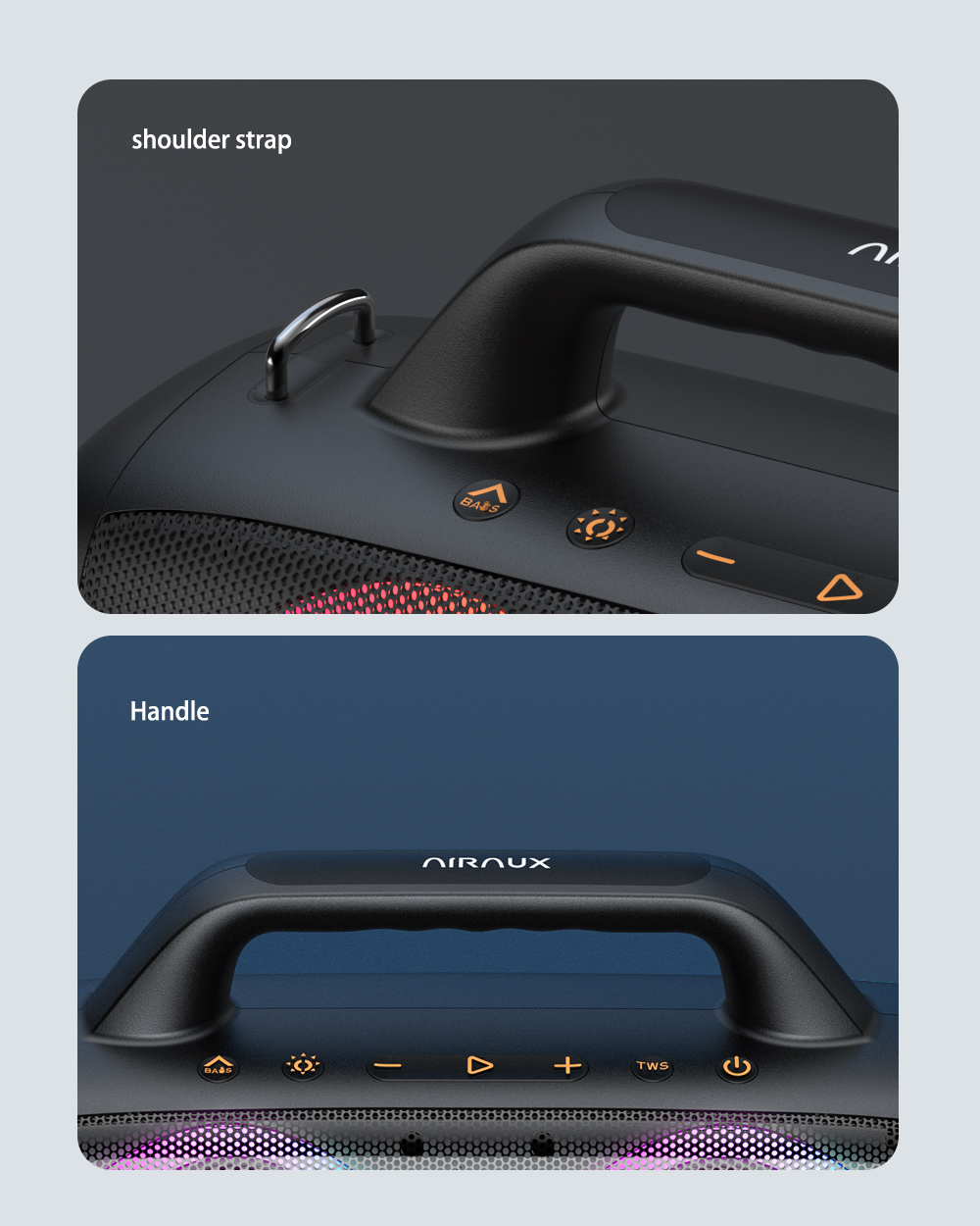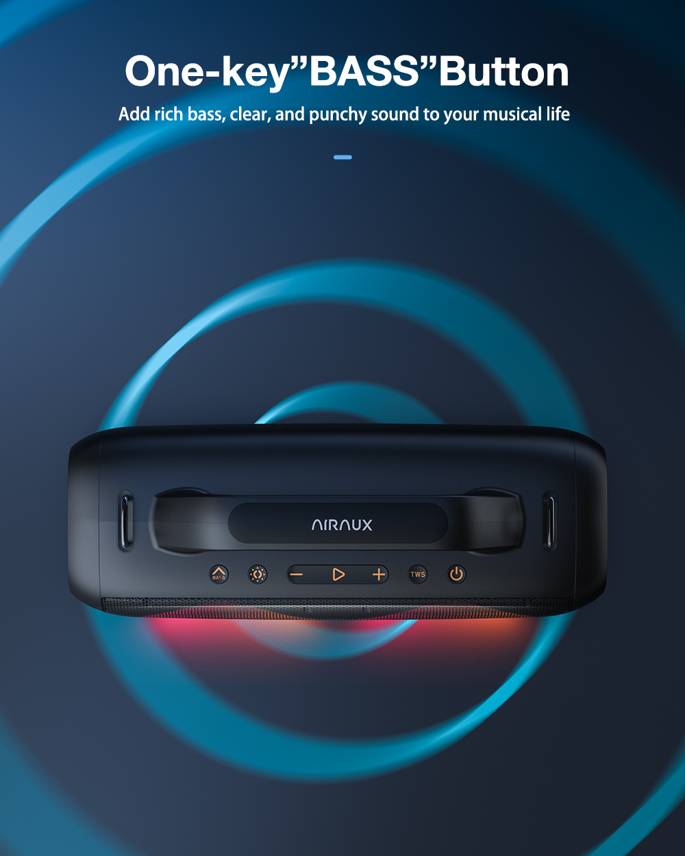 AirAux AA-DH1 50W TWS bluetooth V5.1 hangszóró 360° basszus 4500mAh akkumulátor RGB effektus IPX5 vízálló