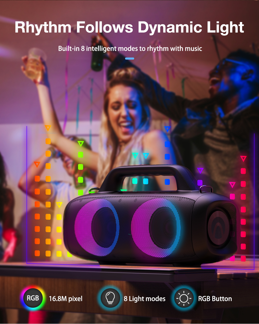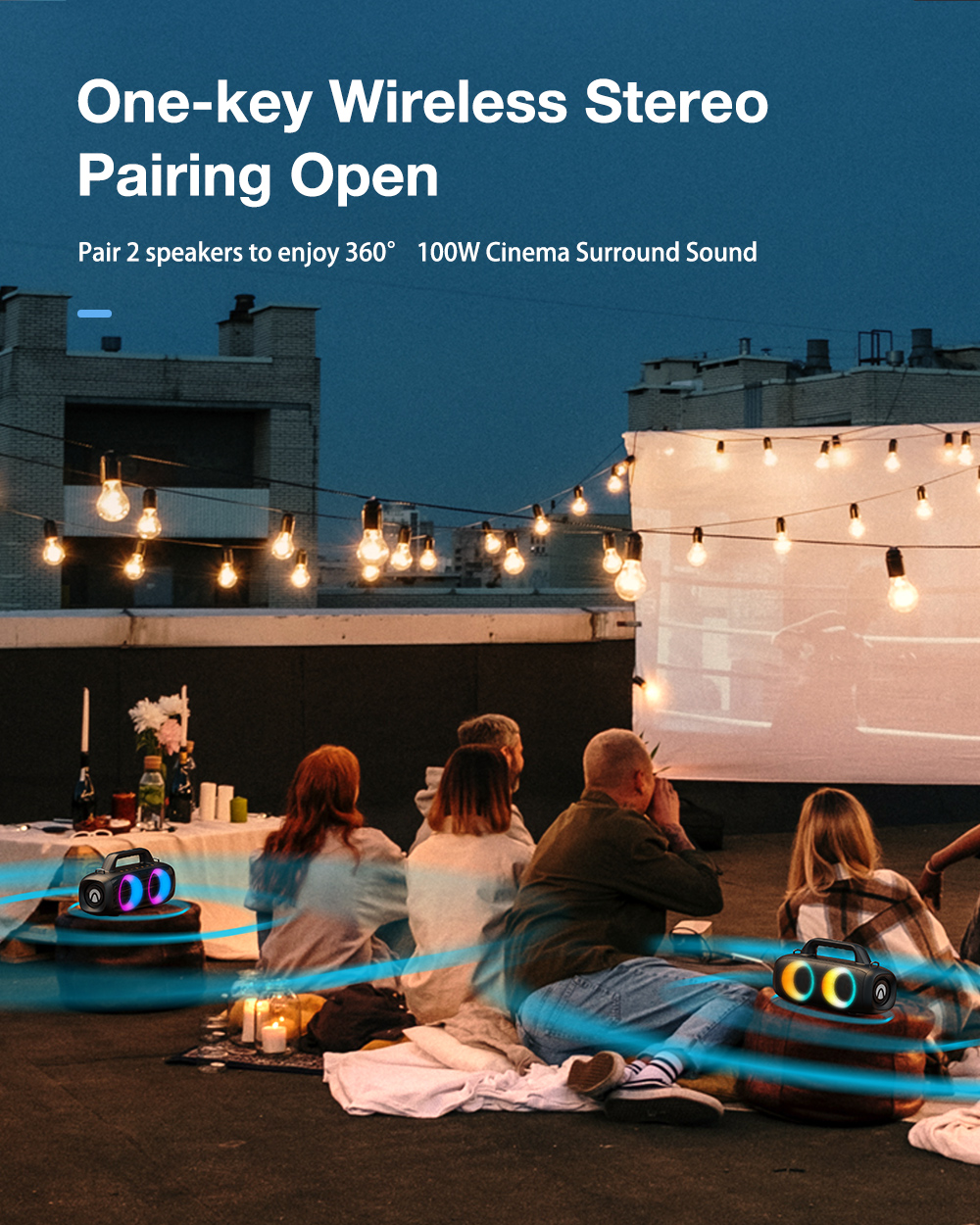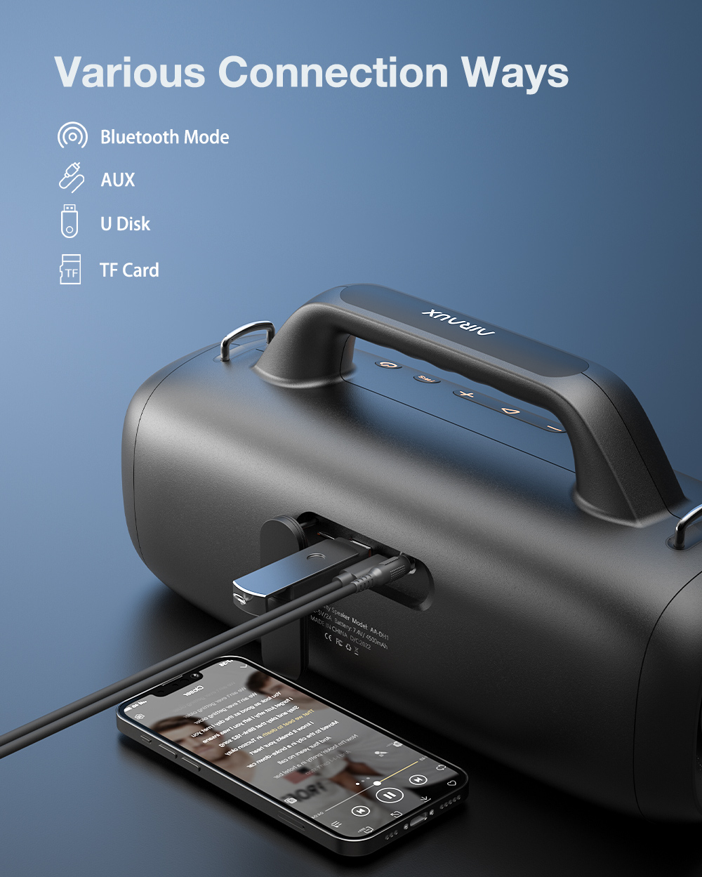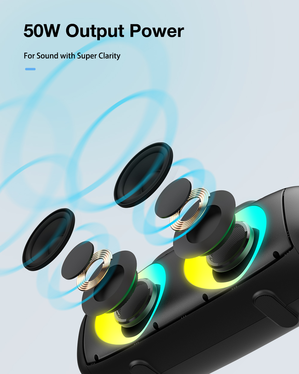 AirAux AA-DH1 50W TWS bluetooth V5.1 hangszóró 360° basszus 4500mAh akkumulátor RGB effektus IPX5 vízálló