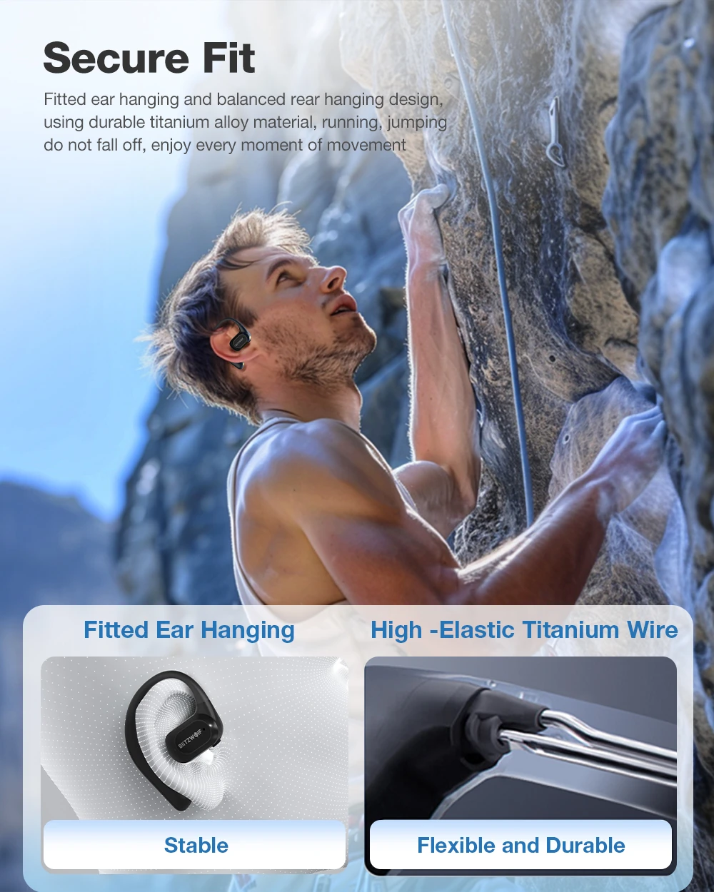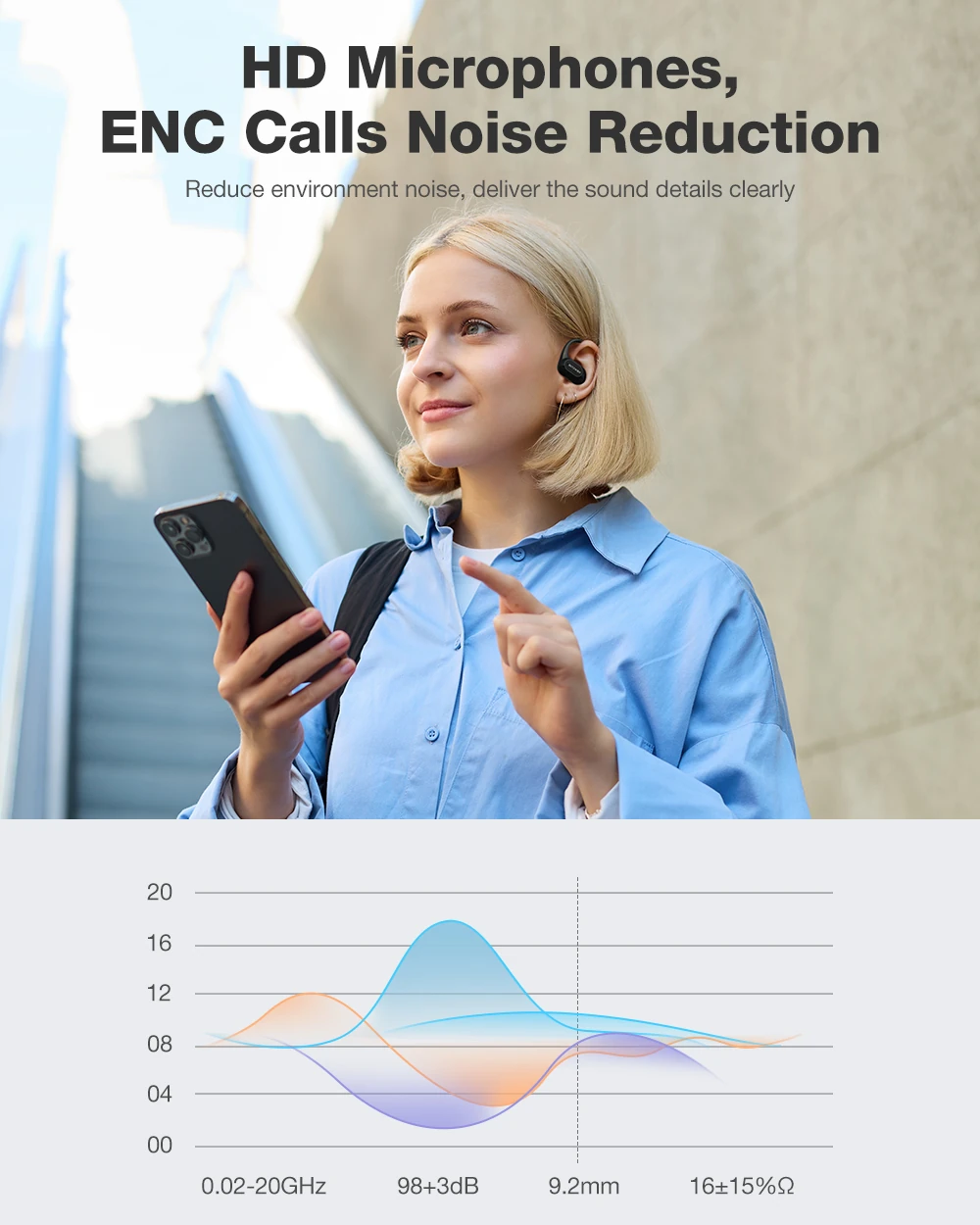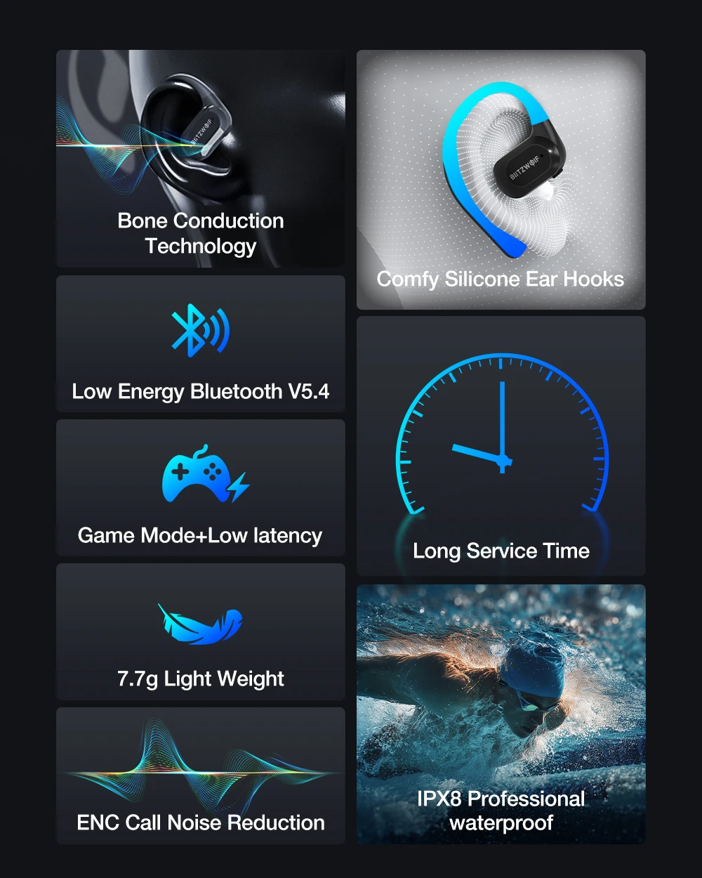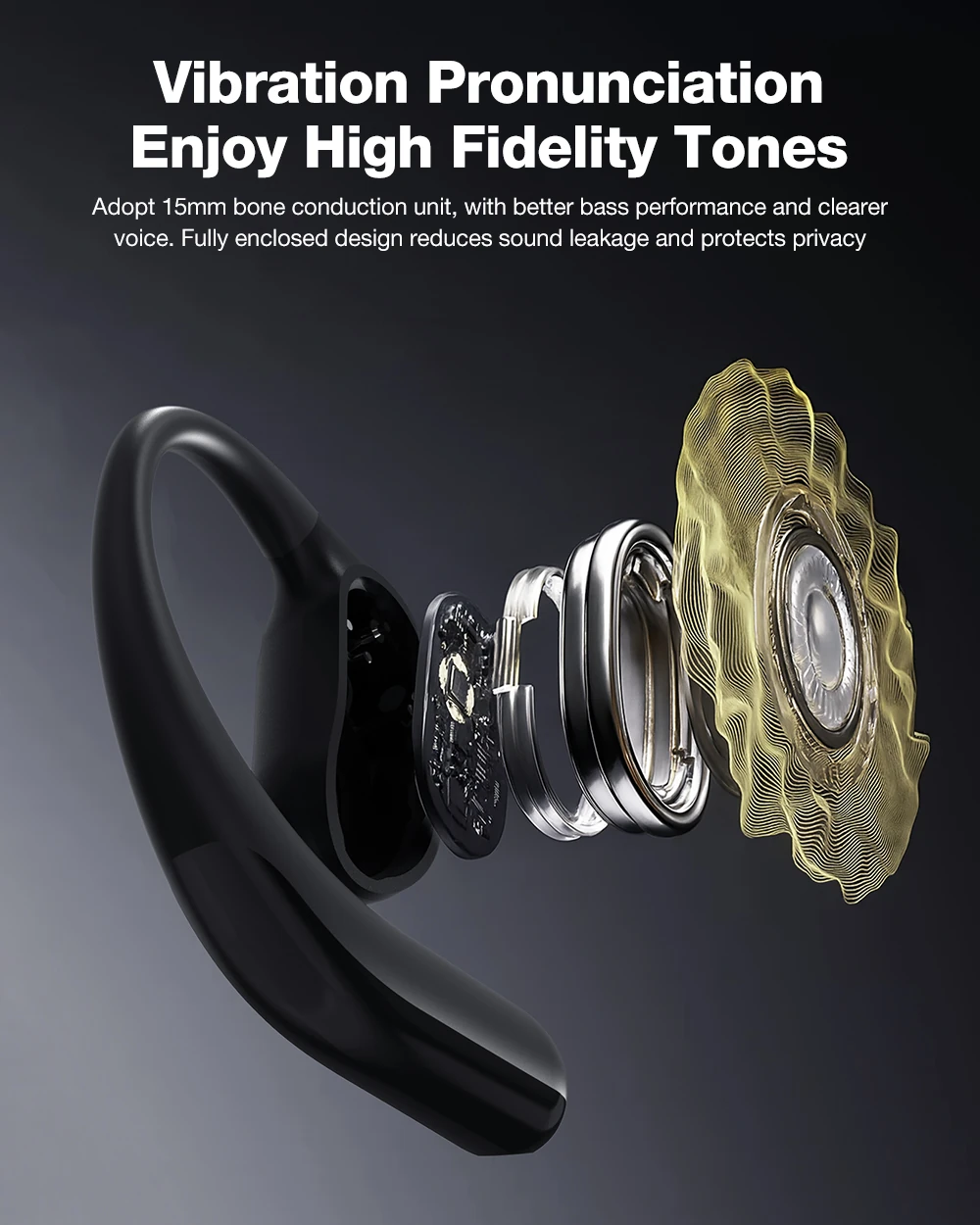 A BlitzWolf® BW-BTS10 fülhallgató nem a hallójáratba illeszkedik, mint a hagyományos fülhallgatók. Helyette a fül elé kell helyezni, ahol a hangszórók rezgése a csontokon keresztül juttatja el a hangot a belső fülbe, így halljuk a zenét. Ennek köszönhetően kényelmes viselet, és nem zárja el teljesen a külvilág hangjait, így biztonságosabb a használata, például sportolás közben.