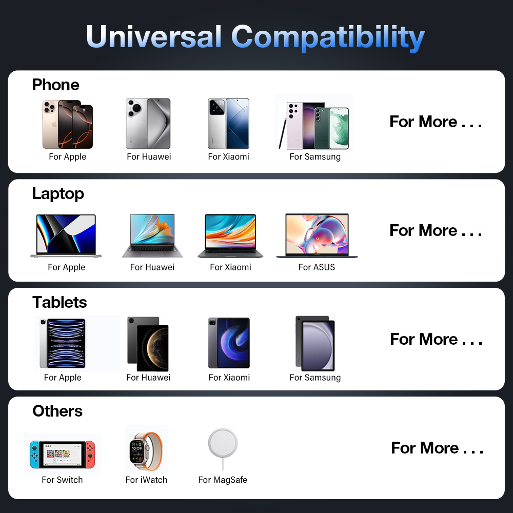 Ezzel a töltővel tényleg minden eszközöd feltöltheted, legyen az egy nagy töltési teljesítményt igénylő laptop, egy telefon, vagy bármilyen vezeték nélkül tölthető okosóra.