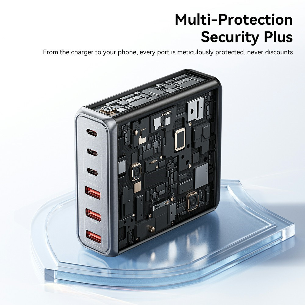 6 az 1-ben erőmű: 3 darab USB-C és 3 darab USB-A port áll rendelkezésedre. Egyszerre töltheted a laptopodat, a telefonodat, a tabletedet, az okosórádat és még a fülhallgatódat is.