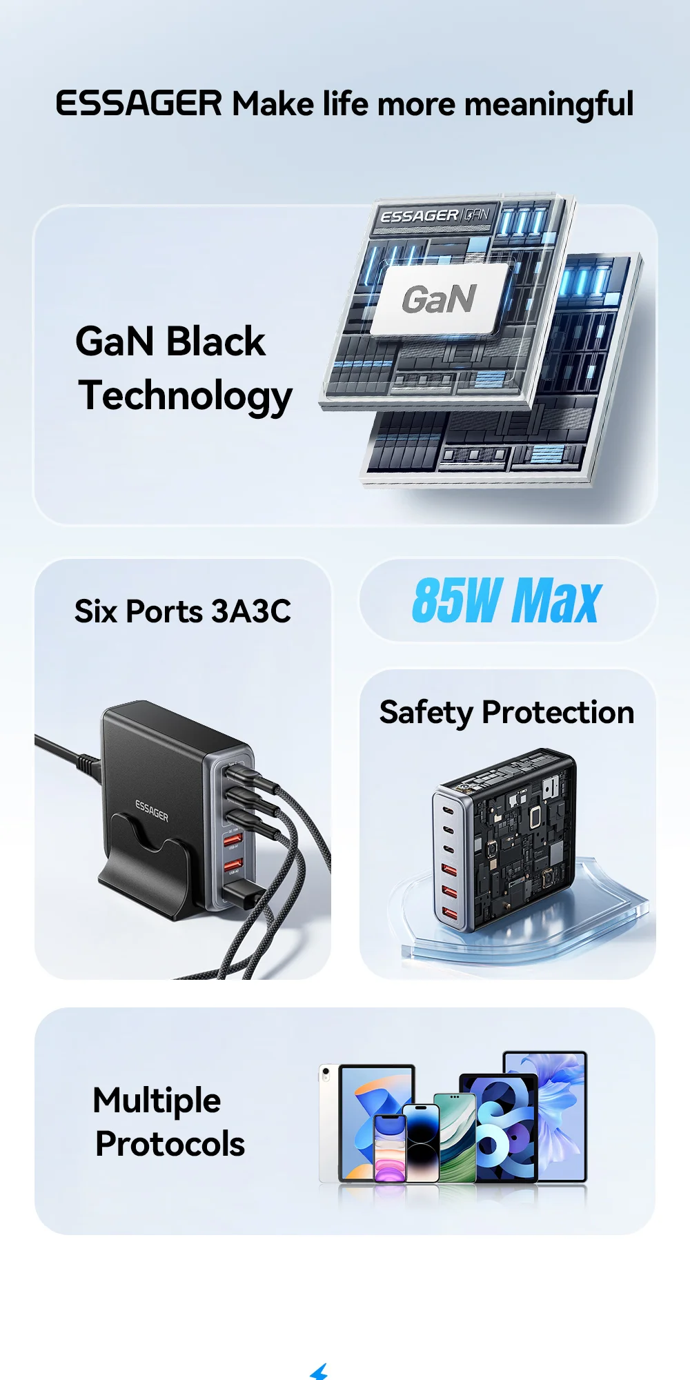 Elfogyott a hely a konnektorban? Unod, hogy minden eszközhöz külön adaptert kell vadásznod? Az ESSAGER 85W GaN asztali töltője nem csupán egy kiegészítő: ez a digitális ökoszisztémád új központja. Fekete, elegáns, és olyan ereje van, amivel egy egész íróasztalt életben tart.