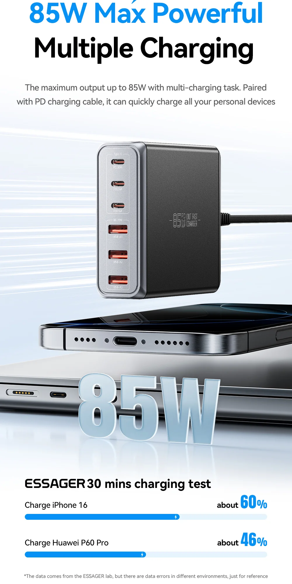Tedd rendbe a töltési szokásaidat még ma! Az ESSAGER 85W GaN töltővel nemcsak időt, de helyet is spórolsz.