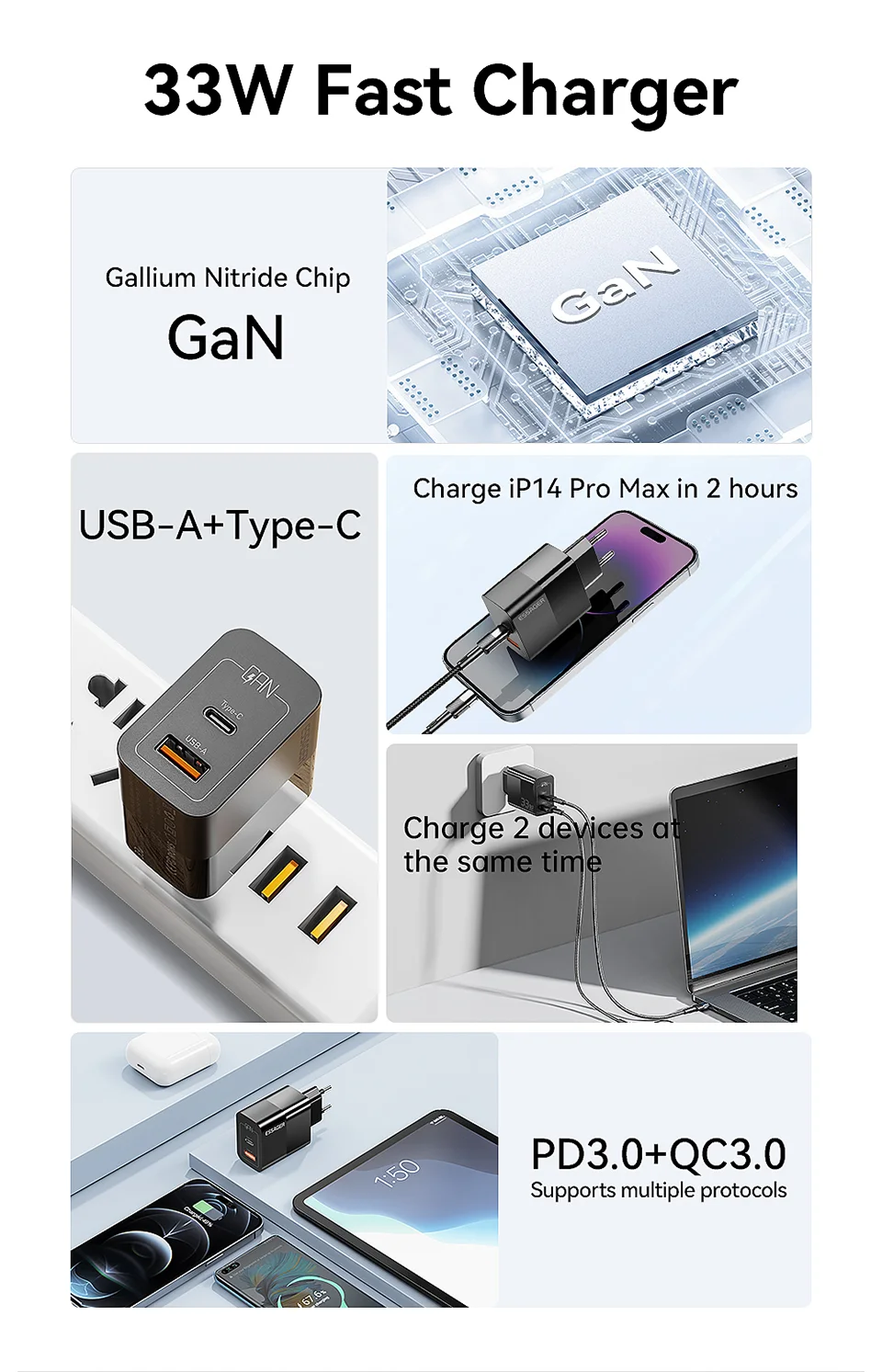 Eleged van abból, hogy a fali aljzat környéke úgy néz ki, mint egy kábel- és adaptertemető? Az ESSAGER 33W GaN Dual Port töltője azért született, hogy rendet tegyen a káoszban, és bebizonyítsa: a méret igenis nem minden – legalábbis ha töltésről van szó.