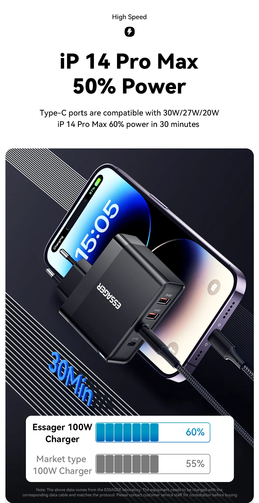 A nagy teljesítmény nagy felelősséggel jár. Az ESSAGER mérnökei precíziós, tűzálló (ABS+PC) anyagokból építették fel az adaptert, és ellátták többszörös védelmi rendszerrel a túlfeszültség, túláram és túlmelegedés ellen. Tölts nyugodtan, akár éjszaka is!