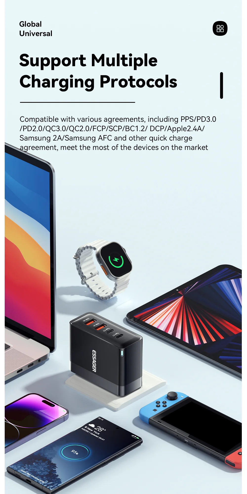 Az ES-CD37 nem válogatós. Támogatja az összes jelentős gyorstöltési protokollt, beleértve a PD3.0, QC3.0, FCP és SCP szabványokat. Legyen szó Apple, Samsung, Huawei vagy Xiaomi eszközről, ez a töltő felismeri az optimális feszültséget, és a lehető leggyorsabb, de legbiztonságosabb töltést biztosítja.