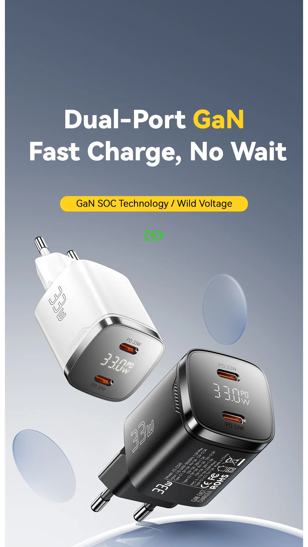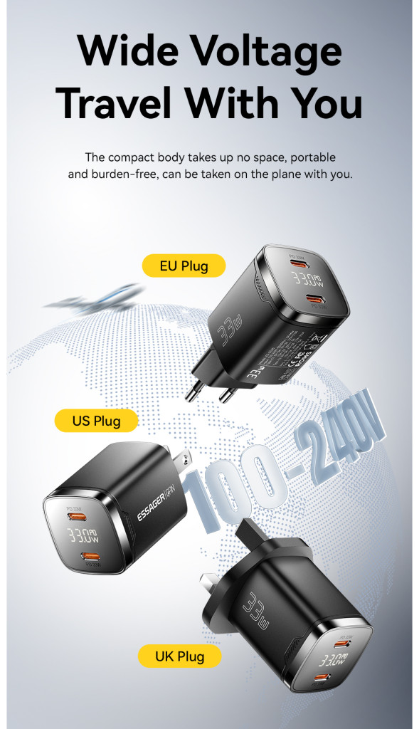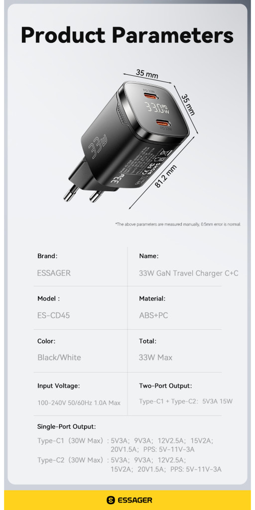 ESSAGER 33W GaN Dual Type-C – Az okos gyorstöltő, ami elfér a tenyeredben