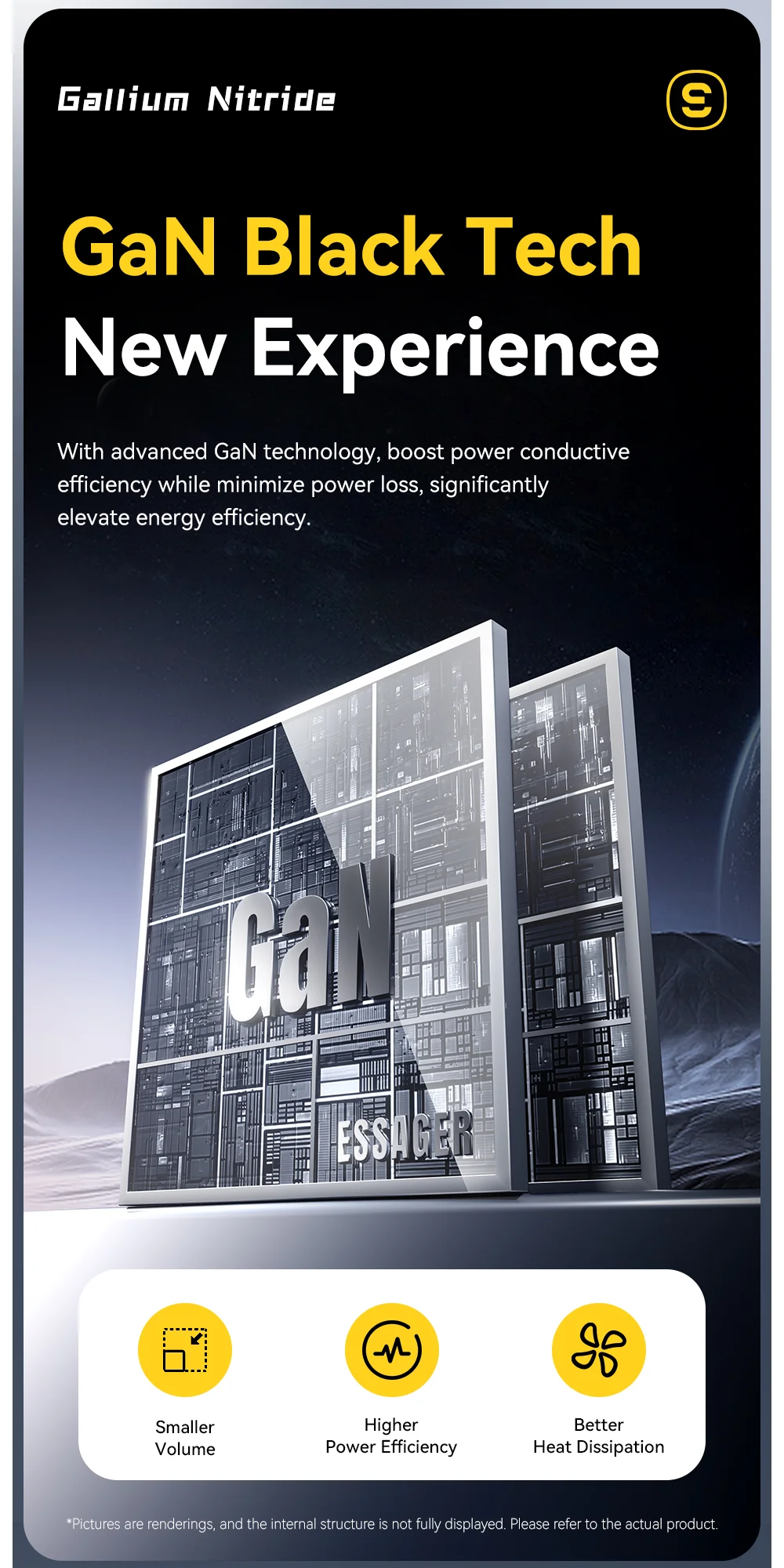 GaN Technológia – Kisebb, hűvösebb, hatékonyabb: A hagyományos szilícium alapú töltőkkel ellentétben ez a GaN chippel szerelt adapter nem melegszik túl, miközben feleakkora méret mellett is nagyobb hatékonyságot nyújt.