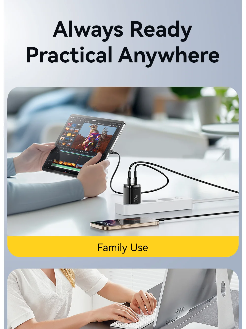 Dupla Type-C kimenet: Miért vinnél két töltőt, ha egy is elég? Töltsd egyszerre a tabletedet és a telefonodat anélkül, hogy konnektor-háborút kellene vívnod a családdal vagy a kollégákkal.