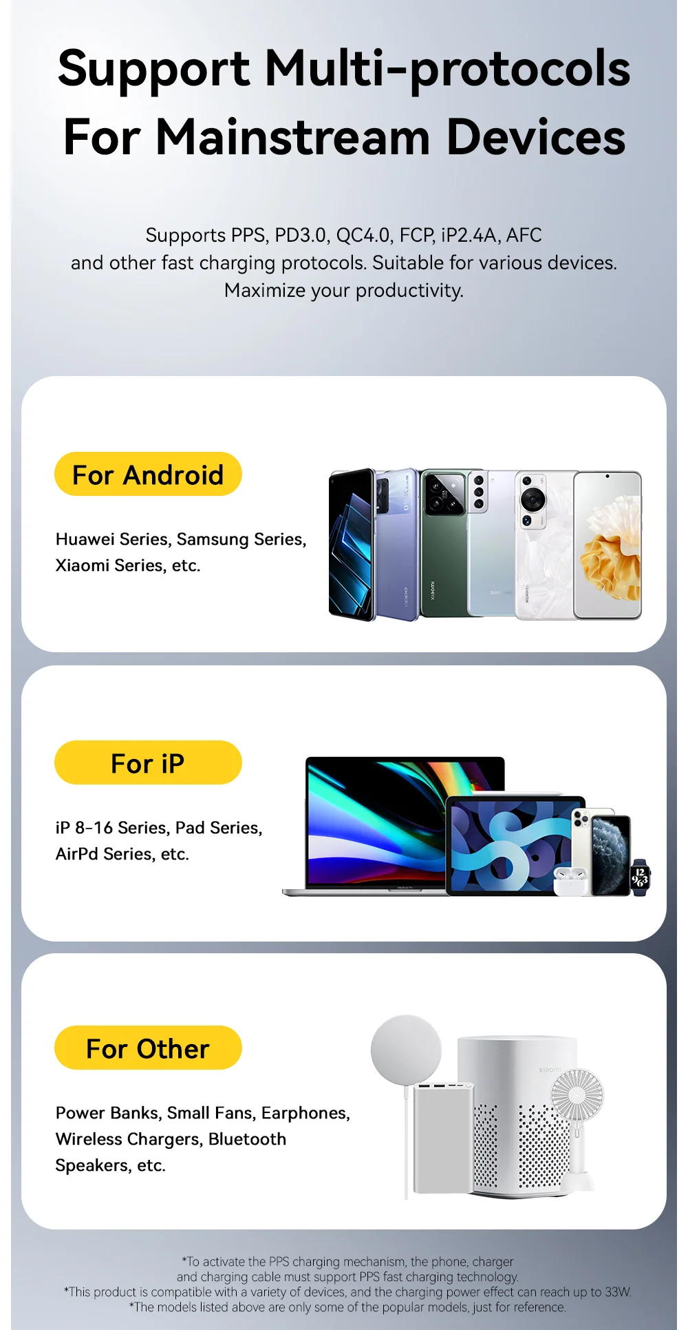 Okostelefonok: iPhone 13/14/15/16 széria (kiaknázza a maximális gyorstöltést), Samsung S-széria, Xiaomi, Pixel és minden PD-képes mobil.
