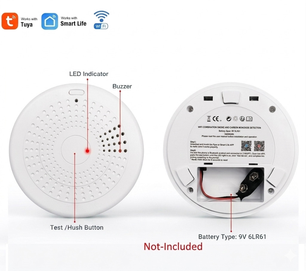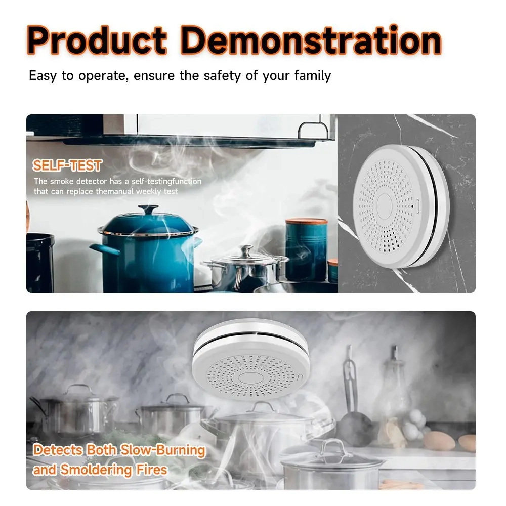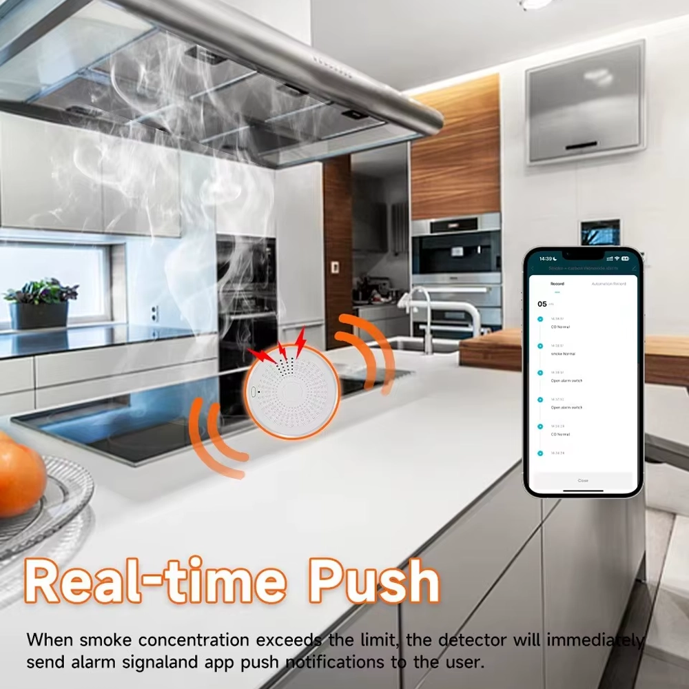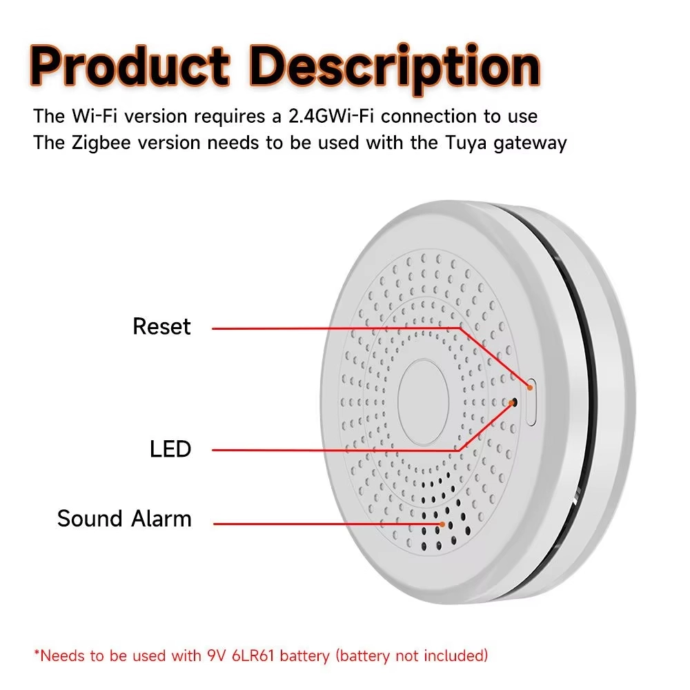 Ez a termék a Tuya Technology Corporation által tervezett, alacsony fogyasztású modult használ beépített Wi-Fi csatlakozási megoldással, amely csatlakoztathatja a terméket a Tuya felhőplatformhoz. Amikor a termék szénmonoxidot vagy füstöt észlel, automatikusan átküldi a riasztási információkat az Applikációnak, figyelmeztetve a felhasználót, hogy védjék meg életüket és tulajdonukat.