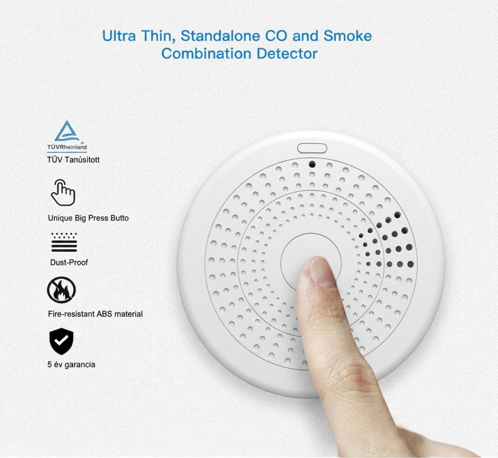 WiFi-s, okos szénmonoxid és füstérzékelő. App irányítás, App és helyi risztás