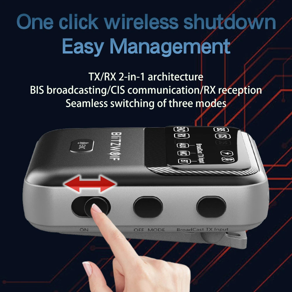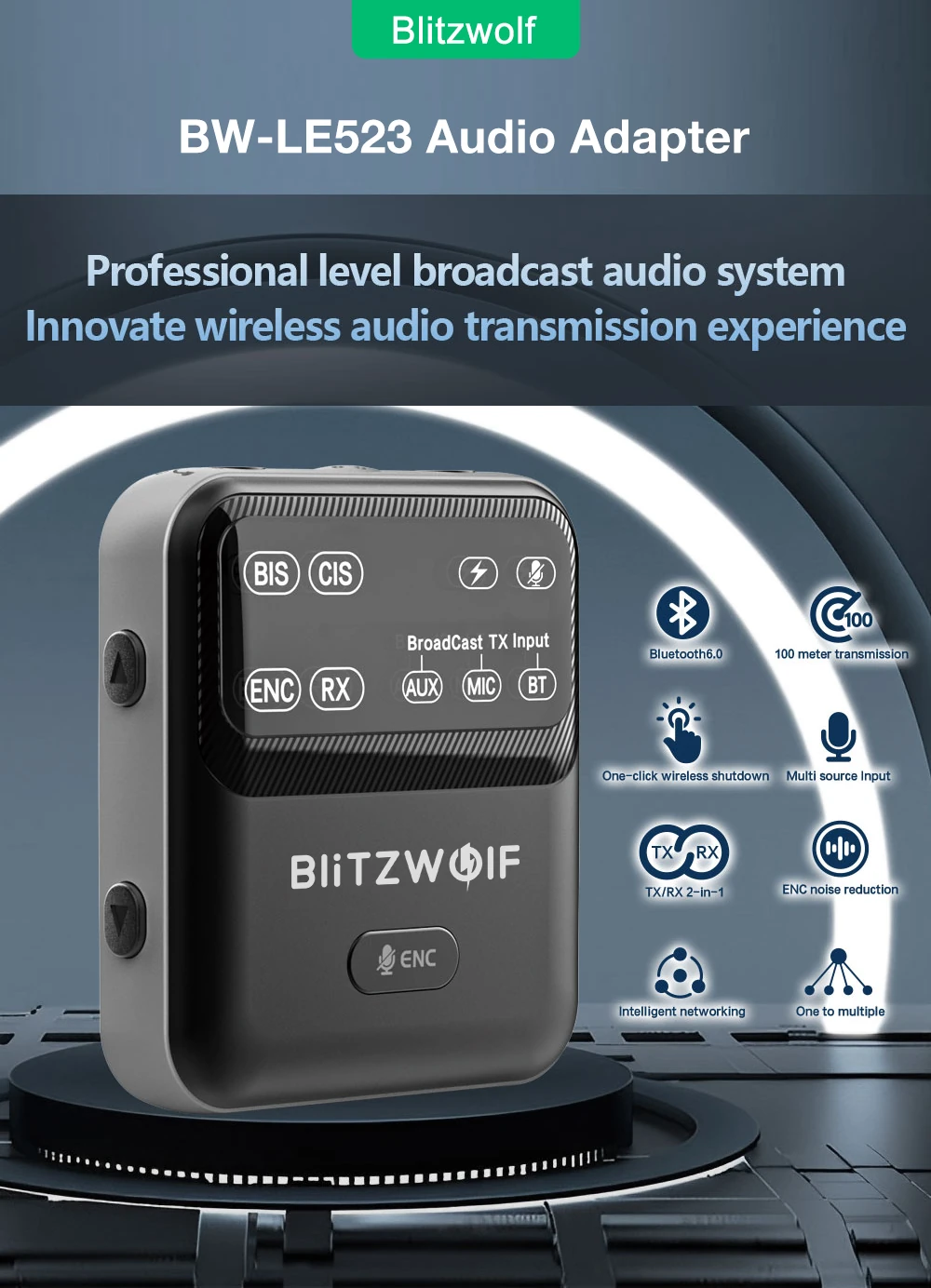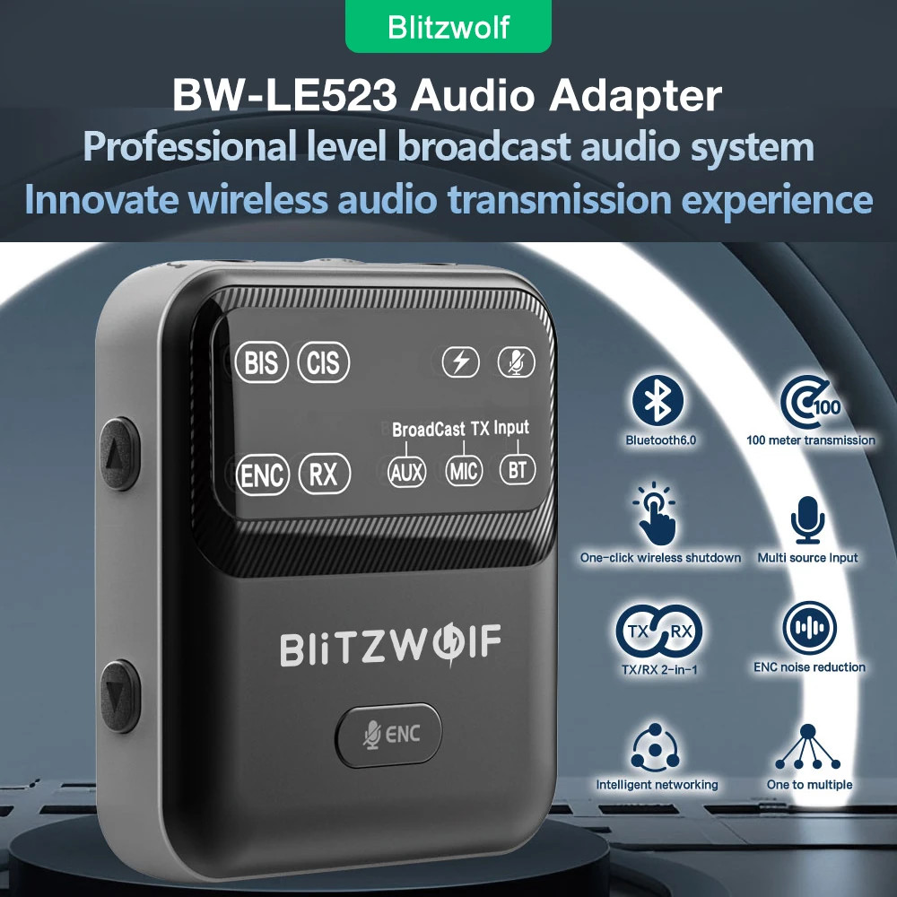 BlitzWolf® BW-LE523 - Bluetooth V6.0 HD™ zene fogadó és küldő egység + beépített mikrofon, 100 méteres hatótáv