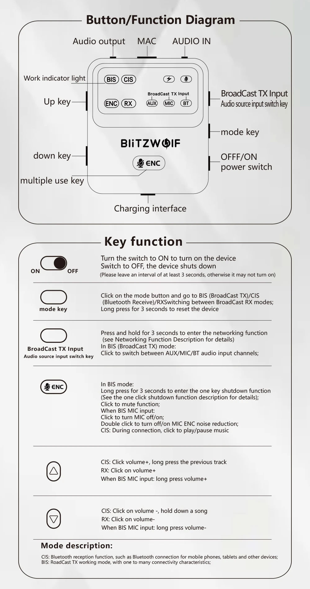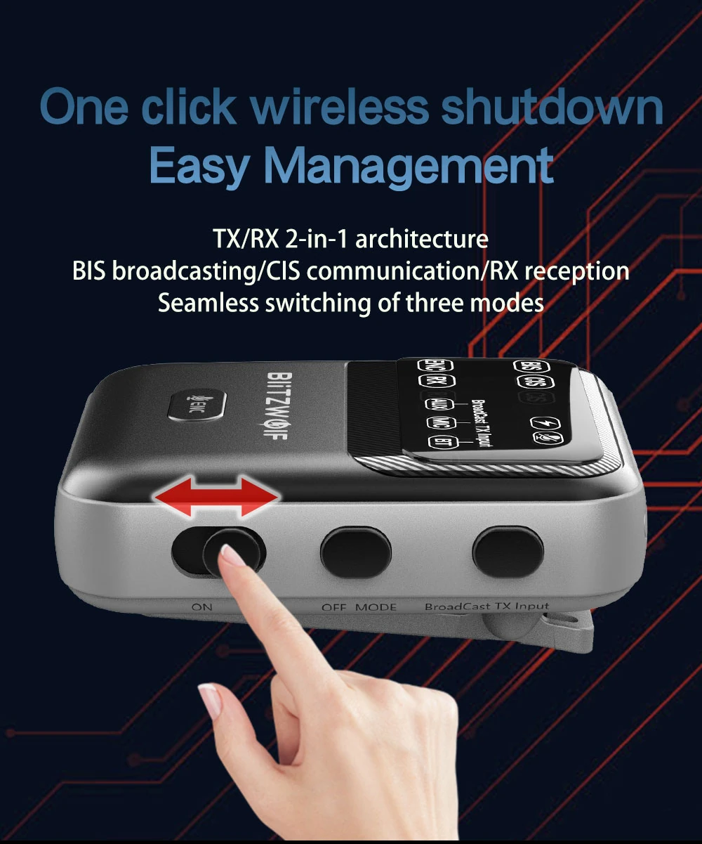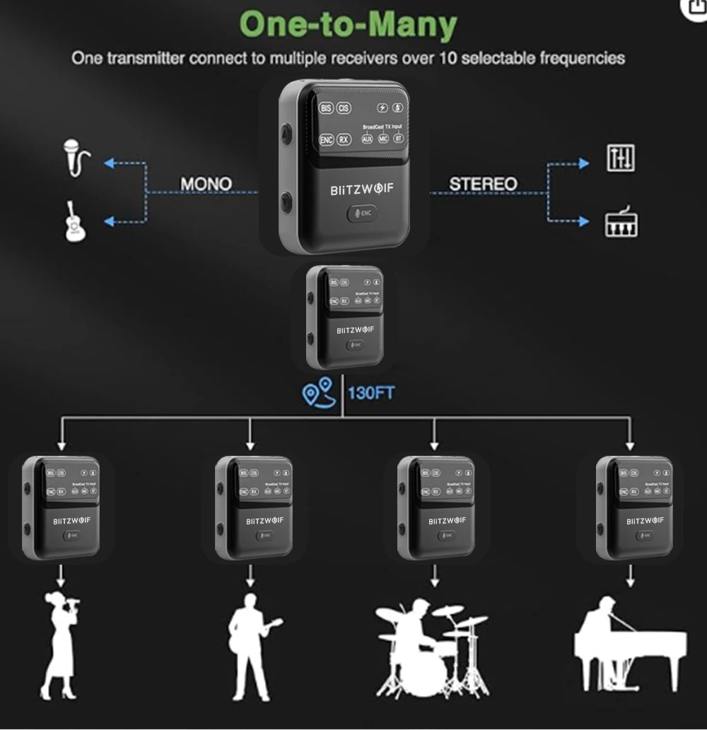 BlitzWolf® BW-LE523 - Bluetooth V6.0 HD™ zene fogadó és küldő egység + beépített mikrofon, 100 méteres hatótáv